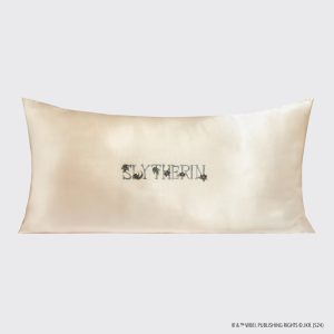 - Get your beauty sleep and rep your Hogwarts House pride with this double-sided satin pillowcase printed with Slytherin’s iconic serpent crest on the front and Slytherin on the back